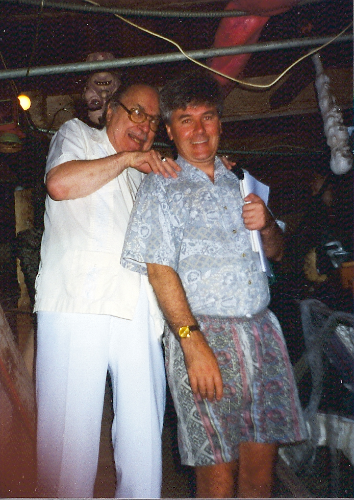 Hollywood, California. Forrest Ackerman (left), known as the ‘Father of Science Fiction,’ famous collector of vampire books and movie memorabilia, shows me how vampires trap their prey.