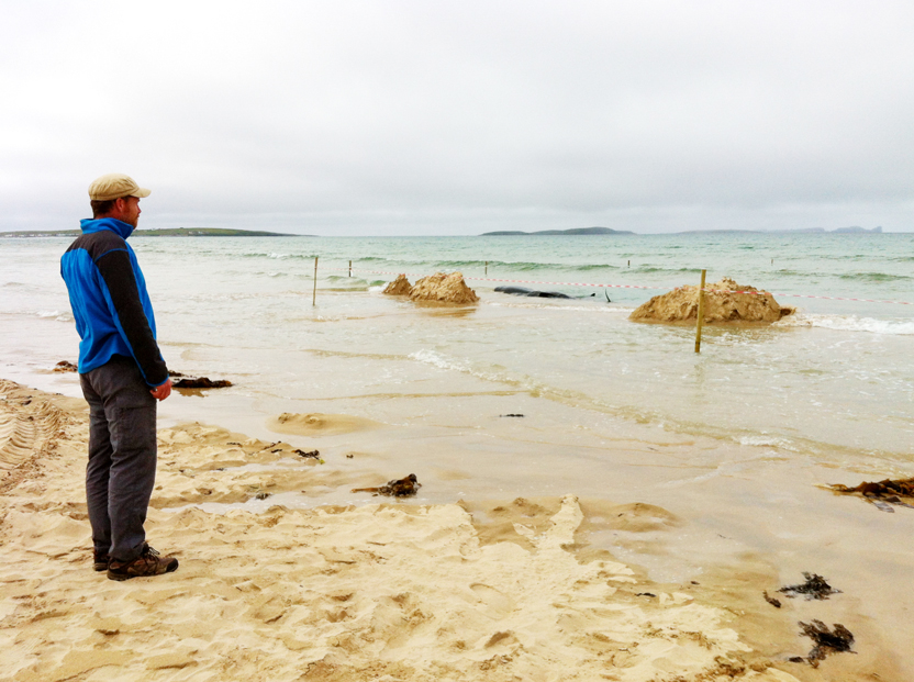 Stranded pilot whale at Ballyness beach, Falcarragh, west Donegal (Photo by Antonia Leitner)