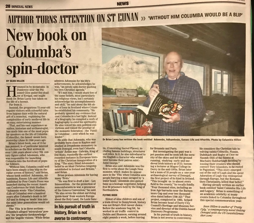Brian’s latest book, one of 15 he has penned, is of particular interest to scholars as the first written in over 1,000 years about a key 7th century figure called Adomnán, who was responsible for launching Columba into the forefront of popular folklore.