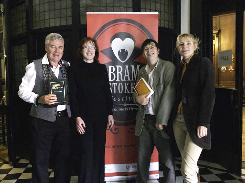 ( l to r) Sean with Vanessa O’Loughlin, organiser of Dublin’s annual Bram Stoker Festival, and guests.