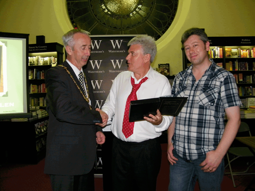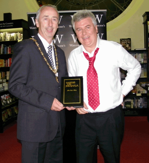 Deputy Lord Mayor of Dublin congratulates Sean at the downtown Waterstone’s Bookstore on his search to uncover the origins of the vampire stories.